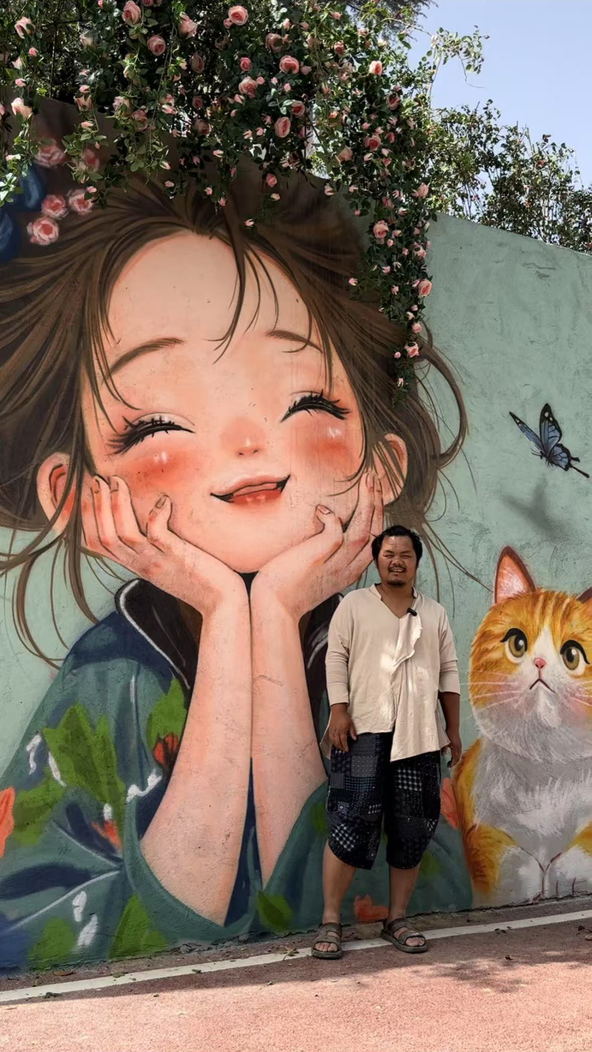 发现哪吒墙绘安全隐患后自费重绘,笑称“艺术不该让观众冒险”;在井营村打造“艺术菜园”,探索“艺术生活化”场景。以年均50幅新作的节奏,让墙绘如“蒲公英种子”飘向街巷,使平顶山成为“可阅读的美术馆”。